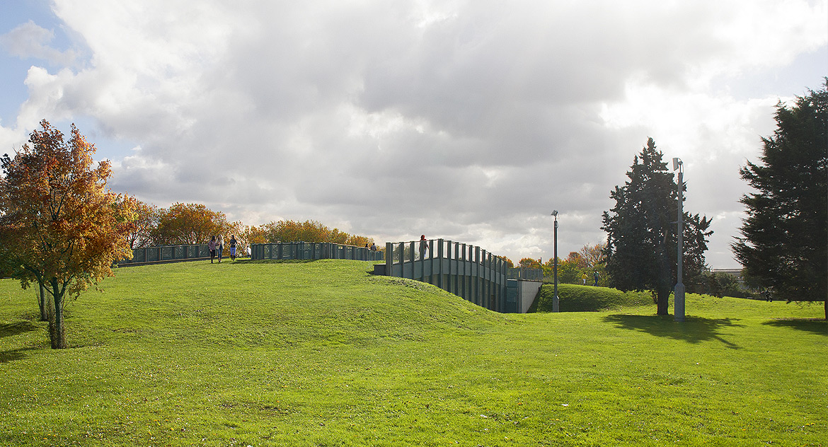 The building is designed to be an integral part of the park landscape with fully accessible green roofing, minimizing any environmental disturbance and offering views to the park activities. The rainwater is reused for irrigation and the facilities are cooled using passive night-time cooling and use of heat absorbing exposed concrete. Plenty of natural light is distributed to all active spaces, and green views can be enjoyed from all main functional areas.